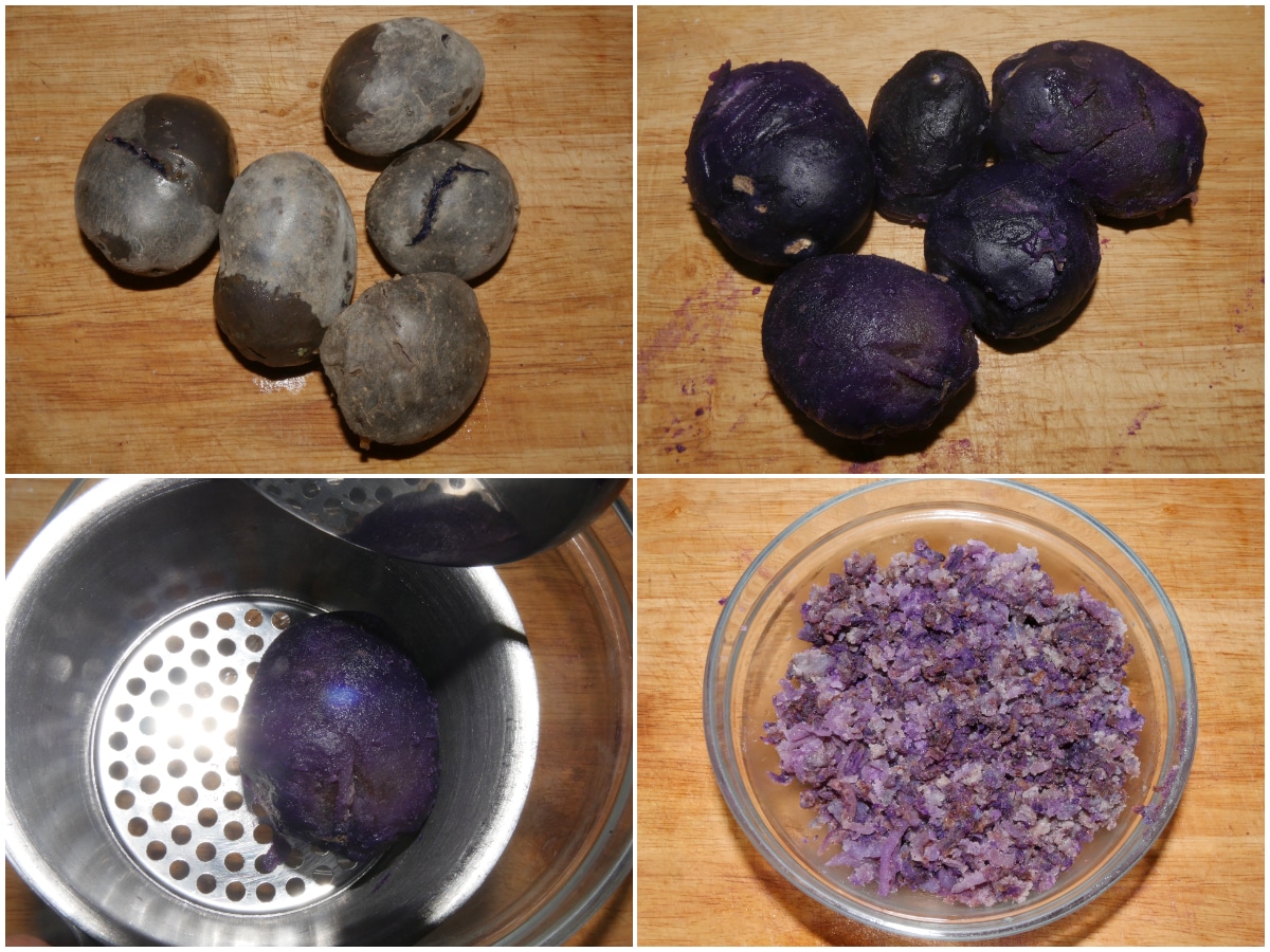 Scolate le patate, spellatele e schiacciatele con lo schiacciapatate, quindi lasciate intiepidire.