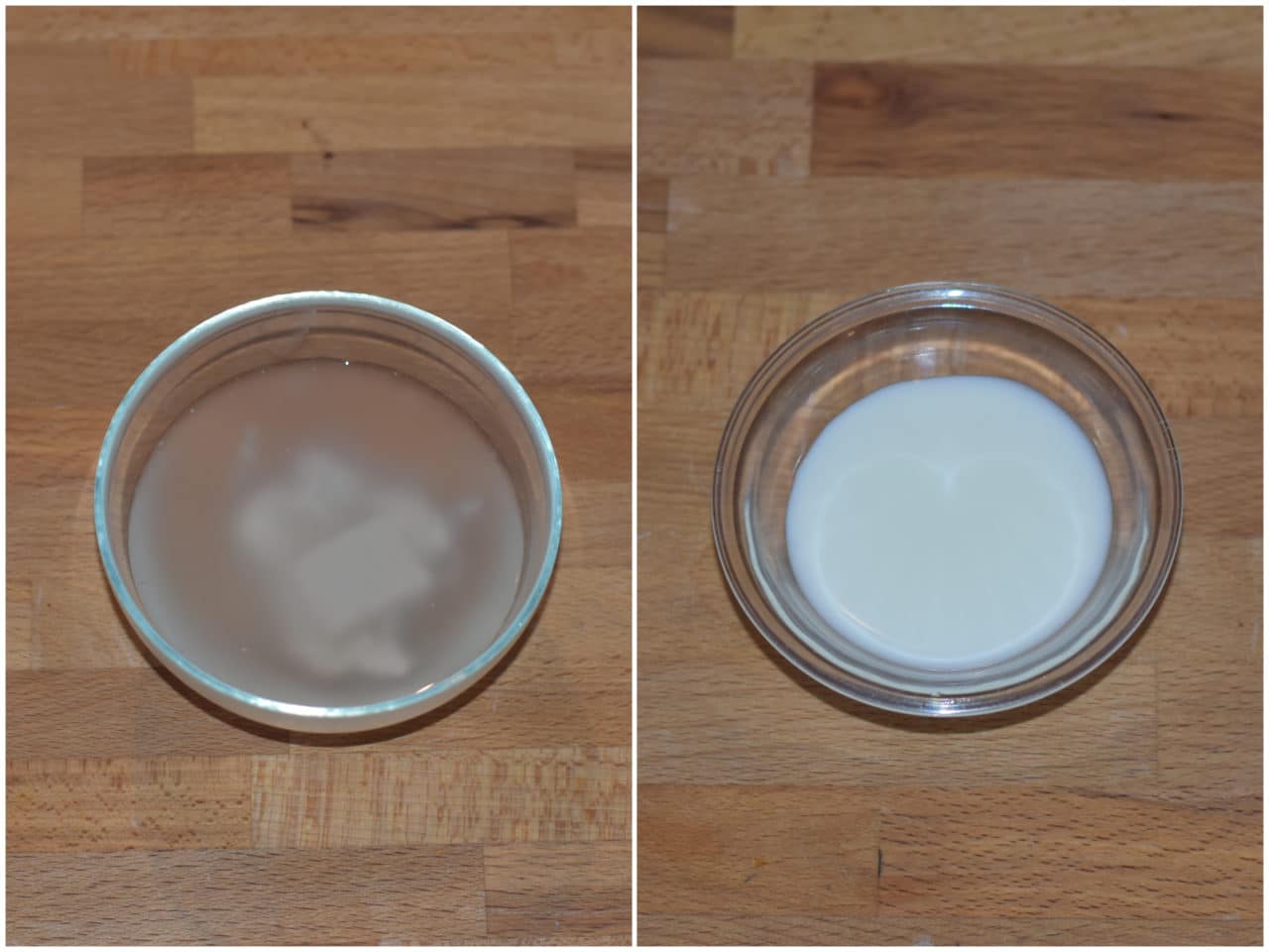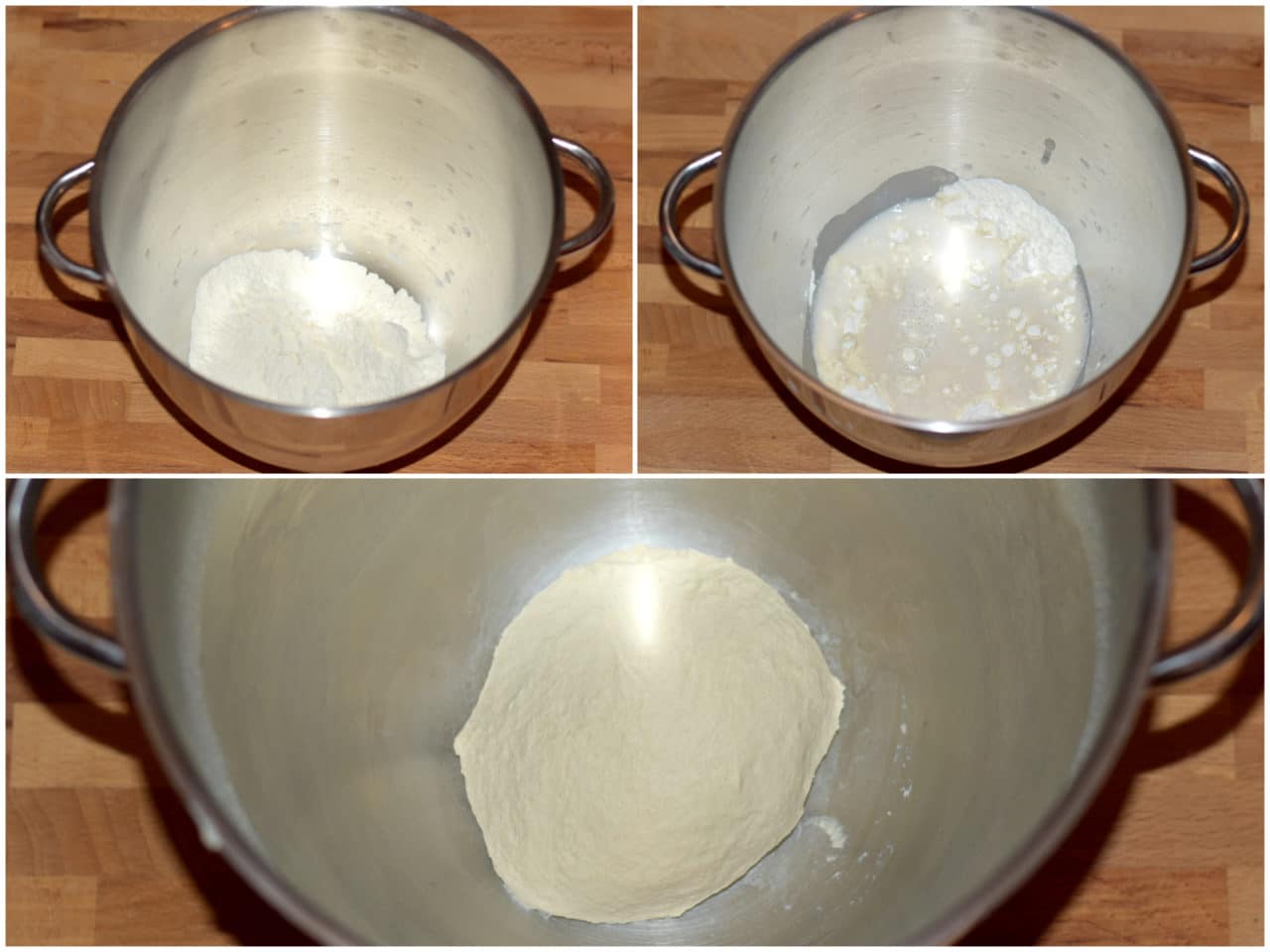 Innanzitutto sciogliete il lievito nell'acqua, poi unite anche il latte.