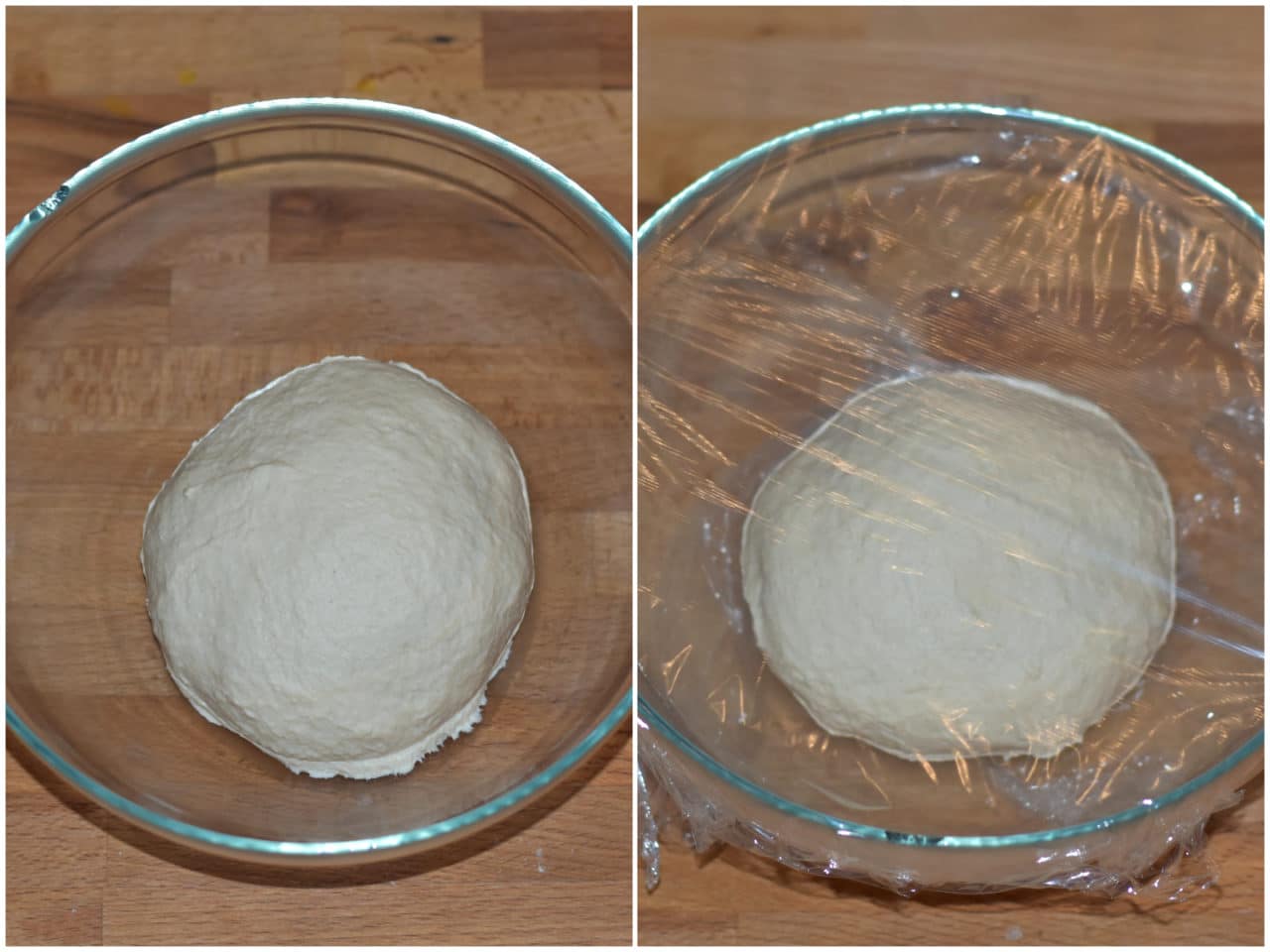 Trasferite in una ciotola leggermente unta, chiudete con pellicola per alimenti e lasciate lievitare per circa 2 ore o fino al raddoppio.