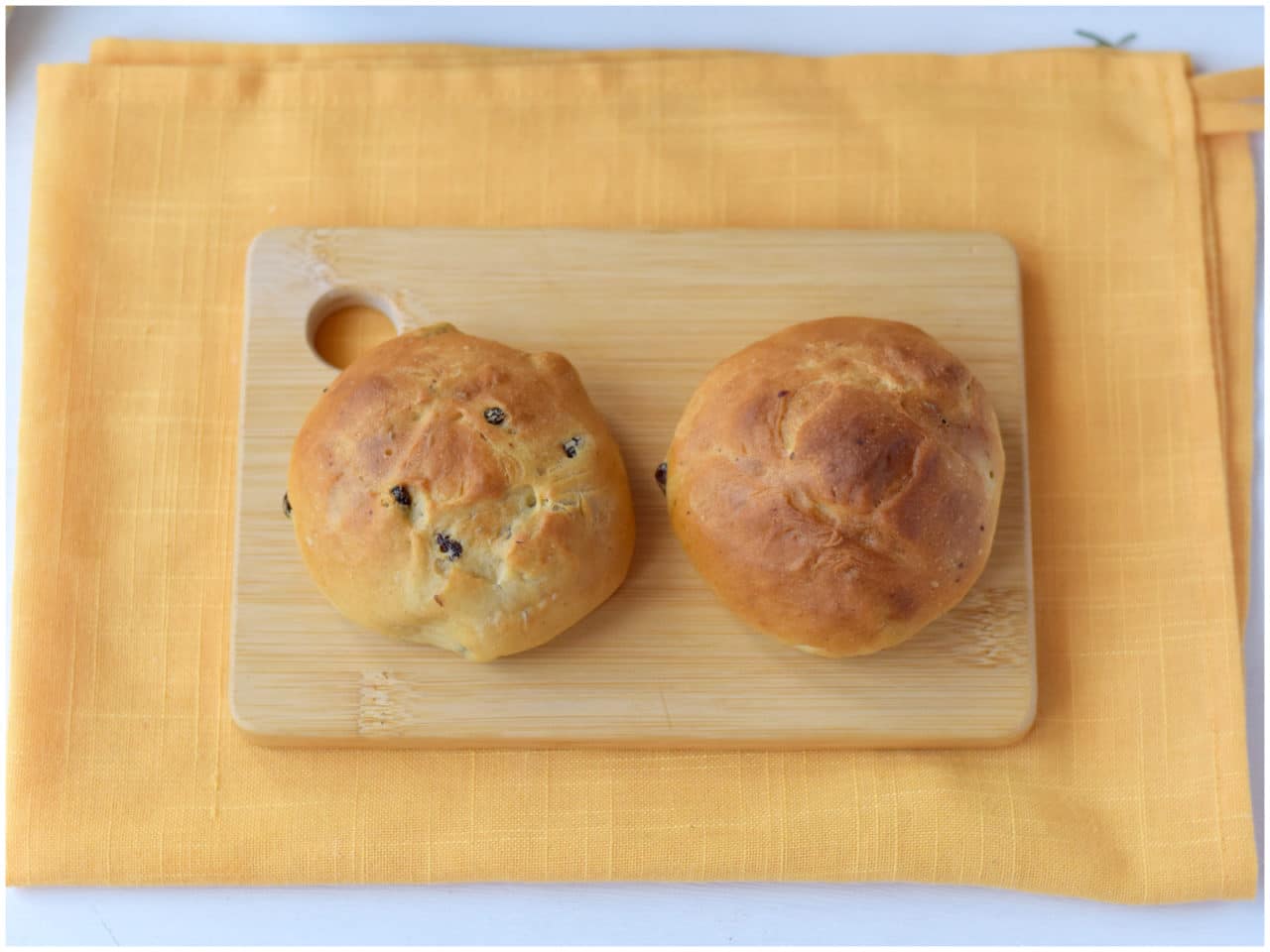 Una volta ottenuto un impasto ben incordato, dividetelo in 5 panettini uguali, disponeteli sulla teglia rivestita di carta forno, ungete con poco olio e lasciate lievitare ancora per 1 ora circa.