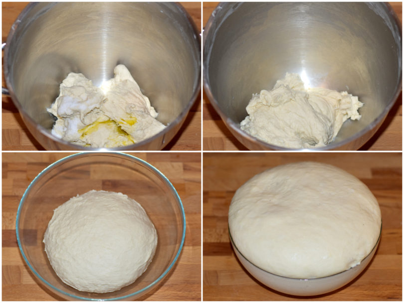 Infine incorporate sale e olio, lavorate ancora per qualche minuto, chiudete la ciotola con pellicola per alimenti e lasciate riposare in un posto caldo per circa 2 ore o fino al raddoppio.