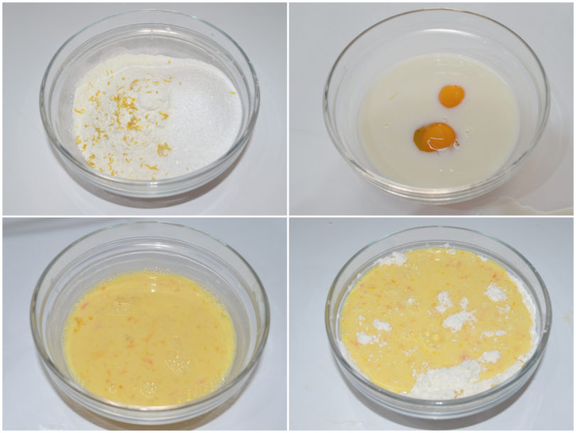 Versate questi ultimi sopra alle polveri e mescolate con attenzione.