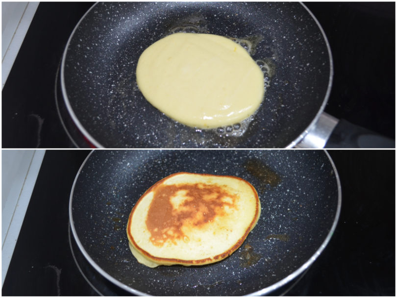 Aspettate che l'impasto si rassodi e si inizino a formare delle bollicine in superficie prima di girarlo per cuocere anche il secondo lato.