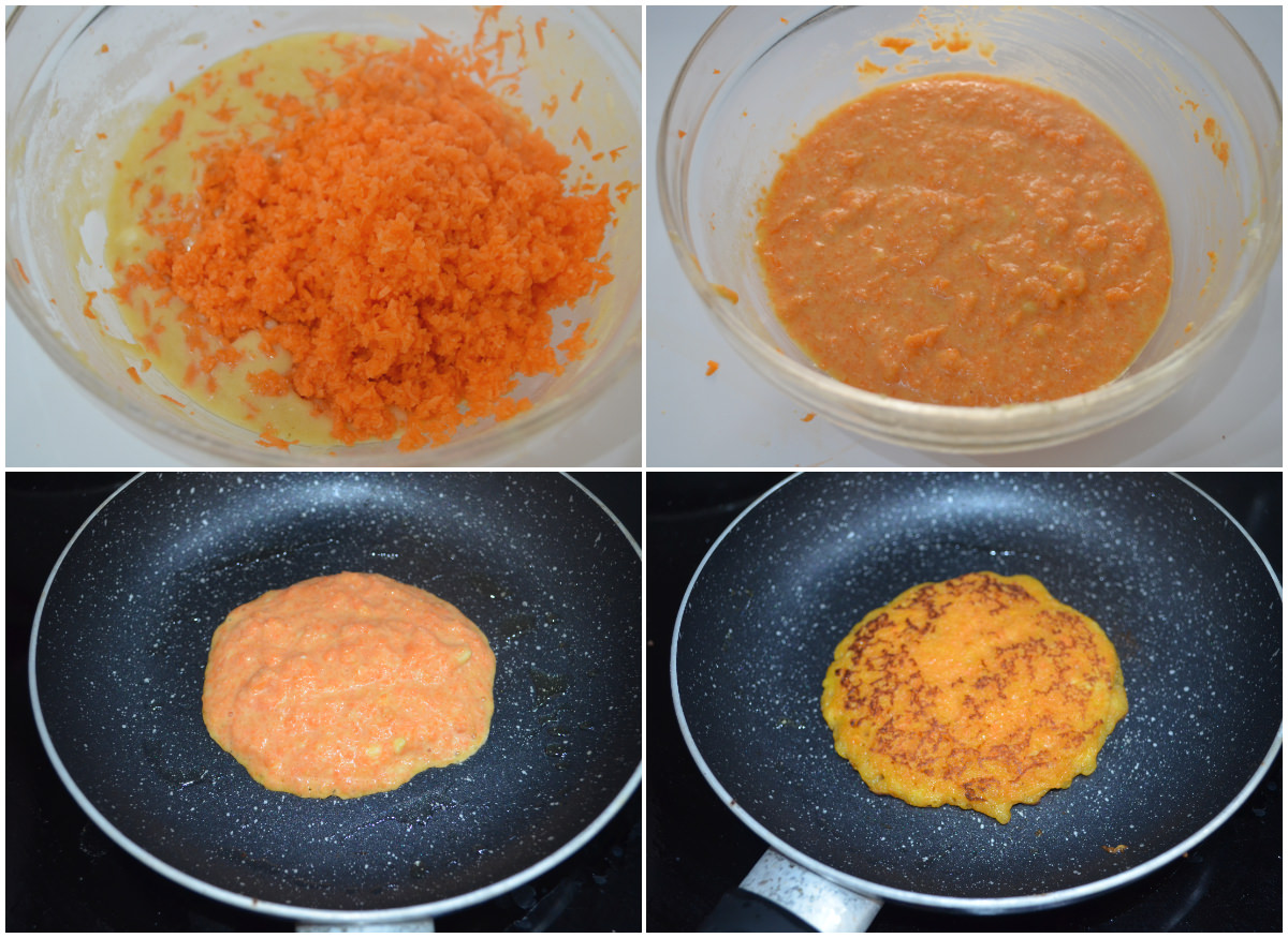 Scaldate una padella antiaderente, ungetela leggermente con poco burro e iniziate a cuocere i pancake, 1-2 cucchiai per volta, a fuoco medio-basso.