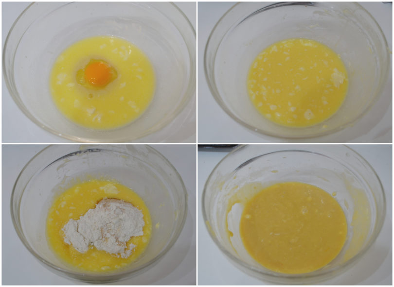 In una ciotola, sbattete l'uovo con latte, vaniglia e burro fuso e intiepidito.