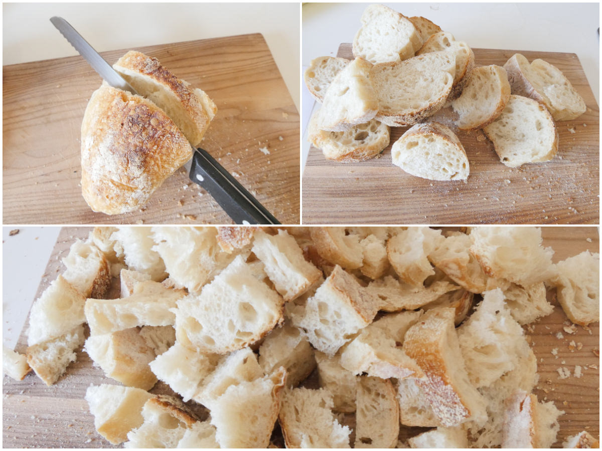 Innanzitutto tagliate il pane vecchio in pezzi.
