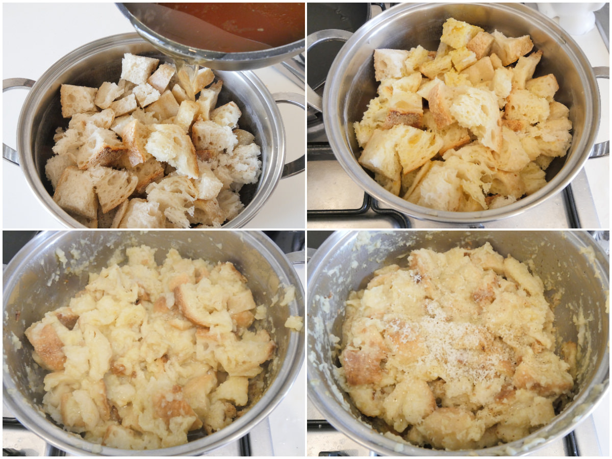 Copritelo con il brodo caldo, quindi cuocete a fuoco lento, con coperchio, finché il pane non lo avrà assorbito completamente.