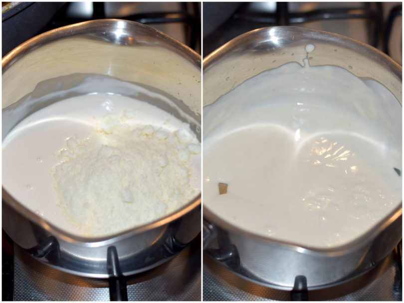 Quando i pandorini saranno quasi cottu preparate la fonduta: unite panna e pecorino in un pentolino, portatelo sul fuoco e cuocete a fiamma medio-bassa per un paio minuti, mescolando, finché il formaggio non si sarà sciolto.