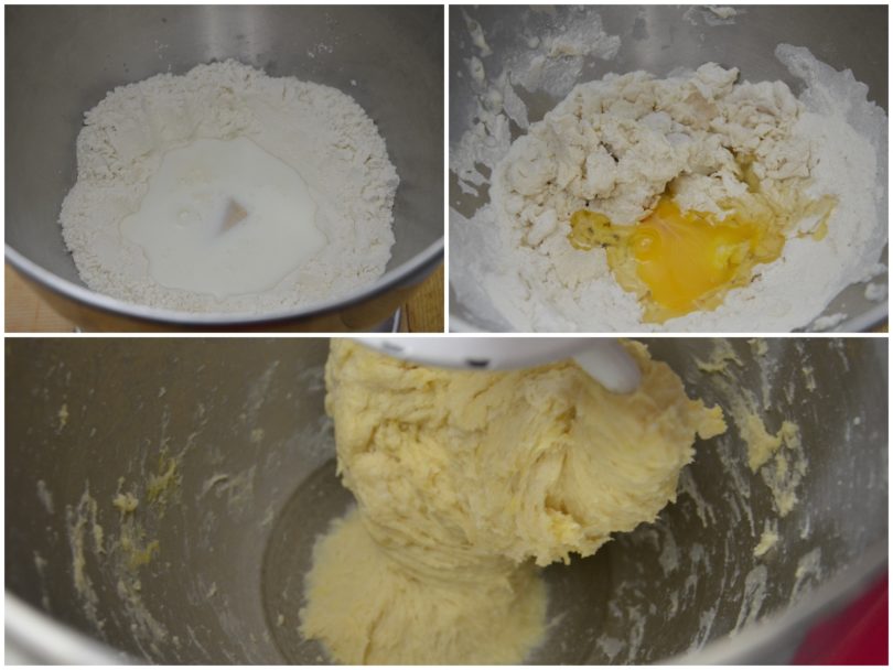 Mettete la farina a fontana in una ciotola ampia, mettete al centro latte e lievito e iniziate ad impastare. Aggiungete anche uovo, sale e olio e continuate a lavorare.