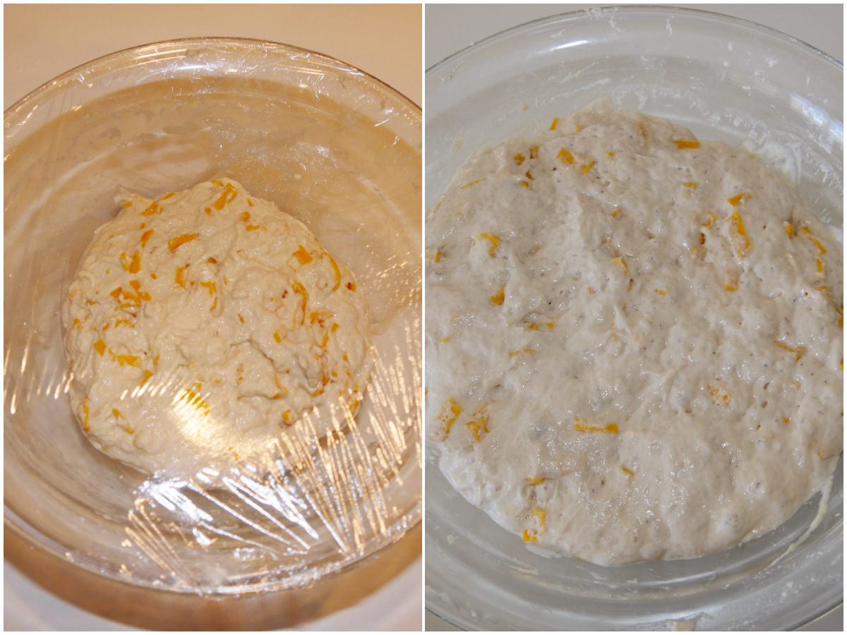 Coprite la ciotola con pellicola trasparente, mettete in un posto caldo e lasciate lievitare per circa 4 ore o fin quando l'impasto non sarà triplicato.