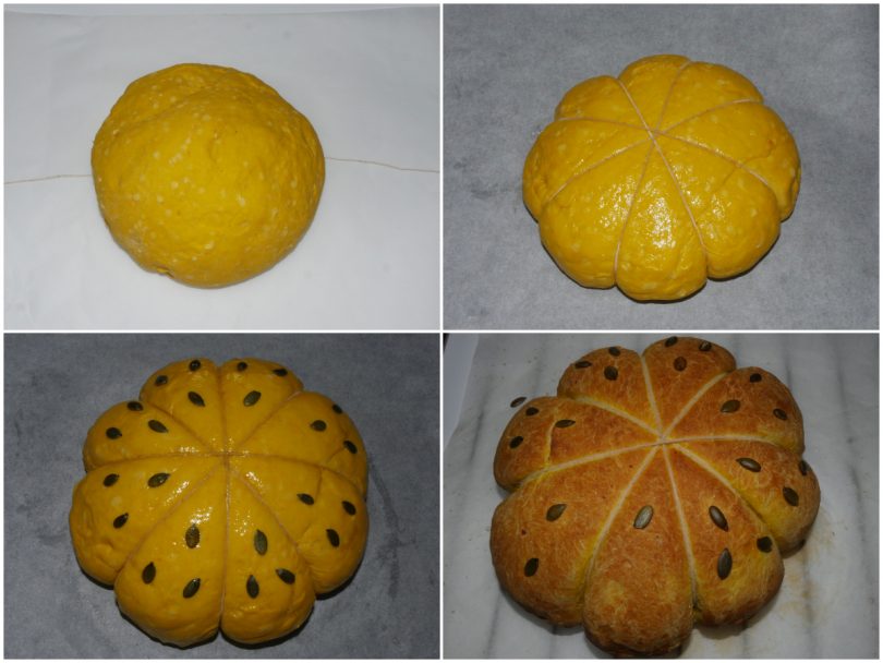 Trascorso questo tempo, con lo spago da cucina, fate 8 giri per ottenere gli 8 spicchietti dando così al pane, la forma di uns zucca.