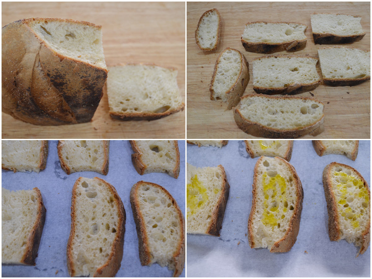 Innanzitutto tagliate il pane a fette e cospargetelo con un goccino di olio.