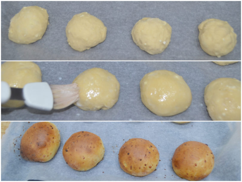 Riprendete l'impasto, sgonfiatelo con le mani infarinate e ricavate 12 paninetti, disponeteli sulla teglia rivestita di carta forno e fate lievitare ancora per 1 ora.