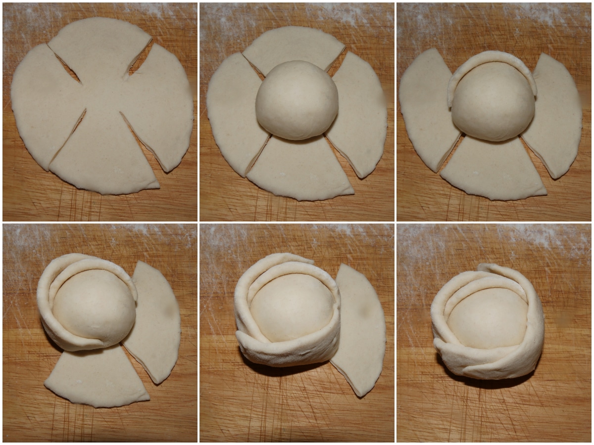 Posizionate 1 pallina al centro, quindi appoggiate gli spicchi sulla pallina, uno per volta: risulterà una sorta di bocciolo di rosa.