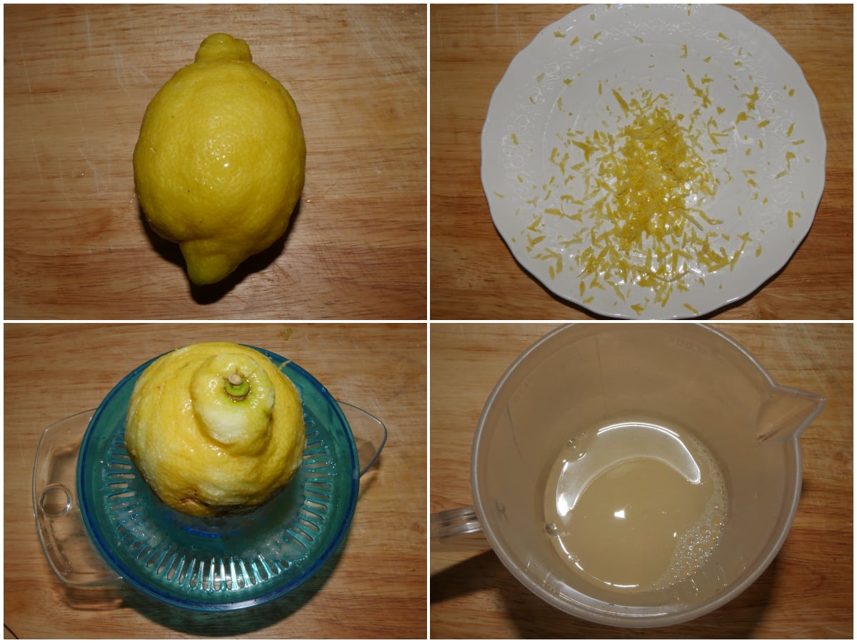 Innanzitutto grattugiate la buccia di limone e spremetene il succo.