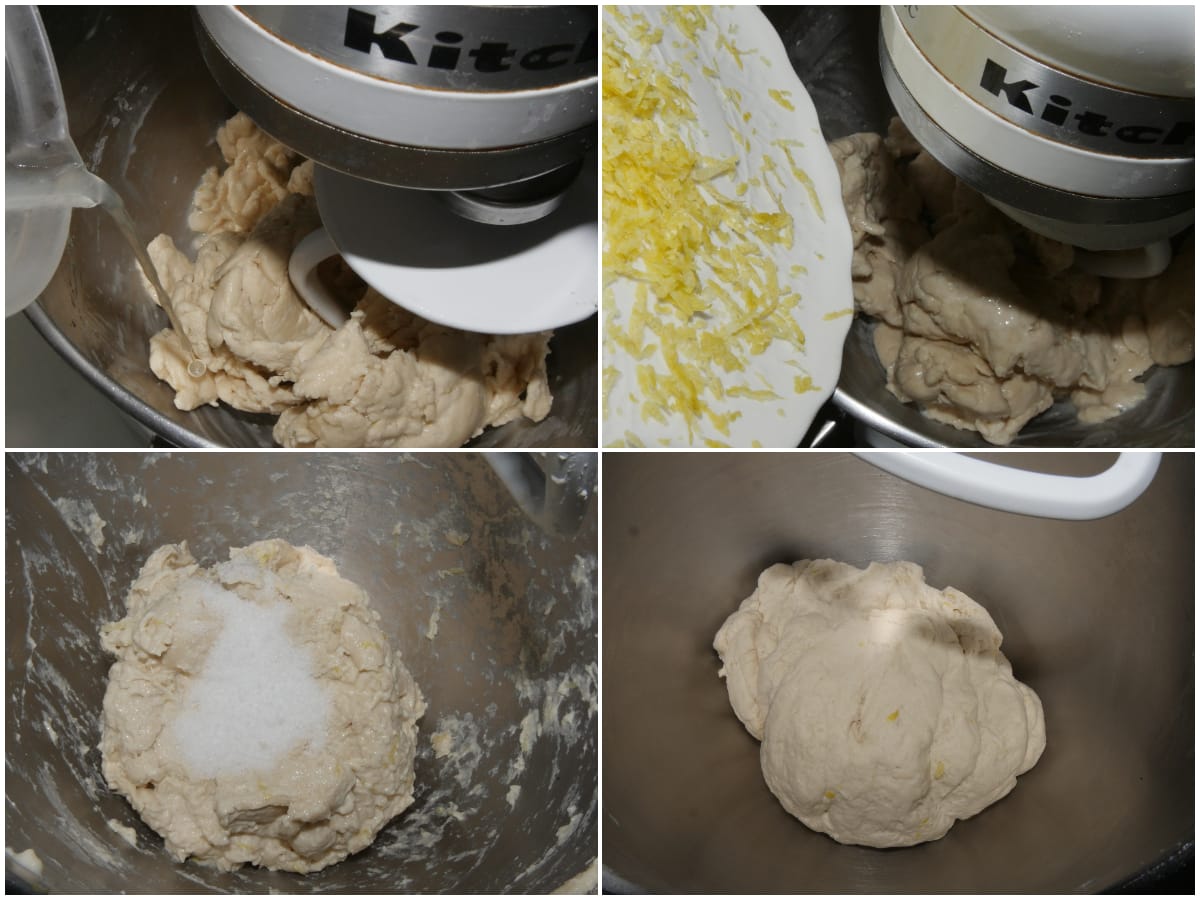 Infine unite anche succo e buccia di limone e sale, e continuate a lavorare fino ad ottenere un impasto elastico.