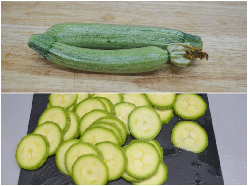 Lavate e spuntate le zucchine e tagliatele a rondelle sottili.
