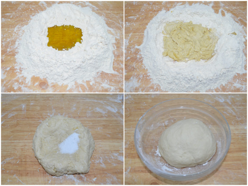 Mettete la farina a fontana in una ciotola o su un piano di lavoro.