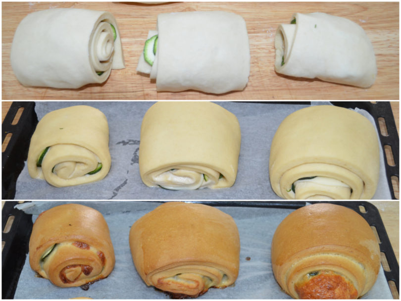 A questo punto arrotolate le strisce inglobando il ripieno in modo da formare i panini.