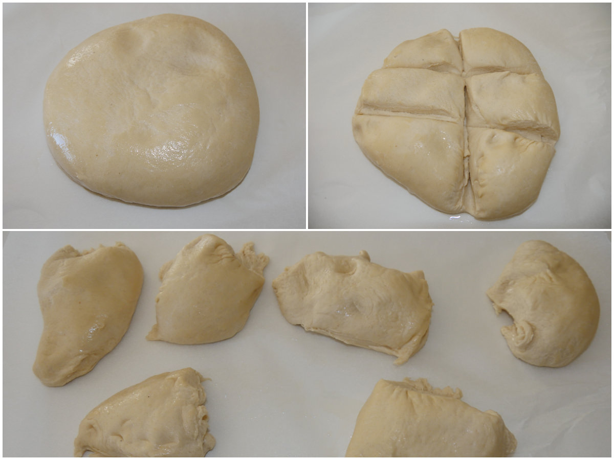 Riprendete il panetto e dividetelo in 6 parti uguali (o di più, se volete fare dei paninetti da antipasto).