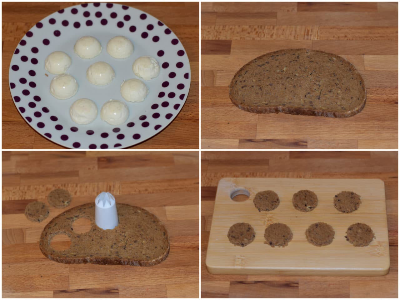 Ricavate dal pane dei dischetti dello stesso diametro degli stampini usati per la panna cotta (o leggermente più grandi), quindi sformate delicatamente la panna cotta.