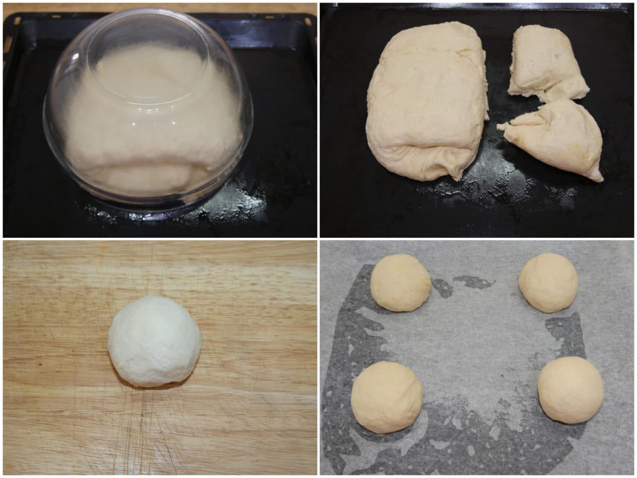 Infine dividete l'impasto in 6 palline da circa 130 gr l'una e lasciate lievitare ancora per 1 ora.