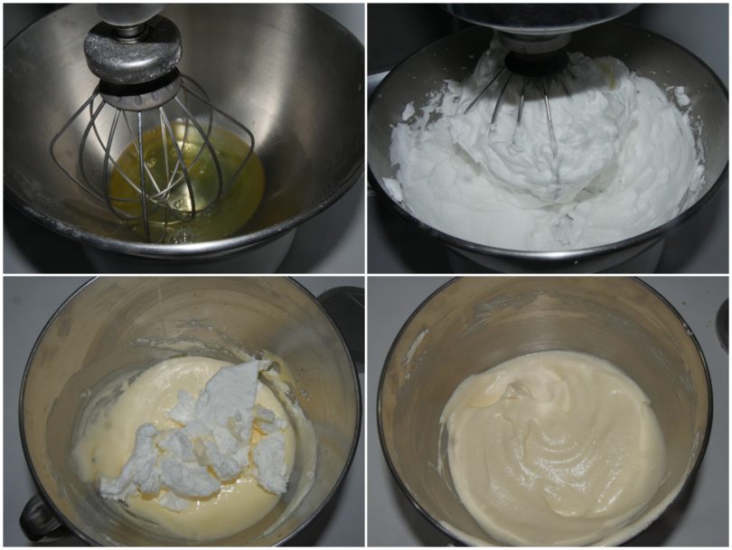 A parte, montate a neve ben ferma gli albumi, quindi aggiungeteli ai tuorli amalgamandoli delicatamente con una spatola, con un movimento dal basso verso l'alto.