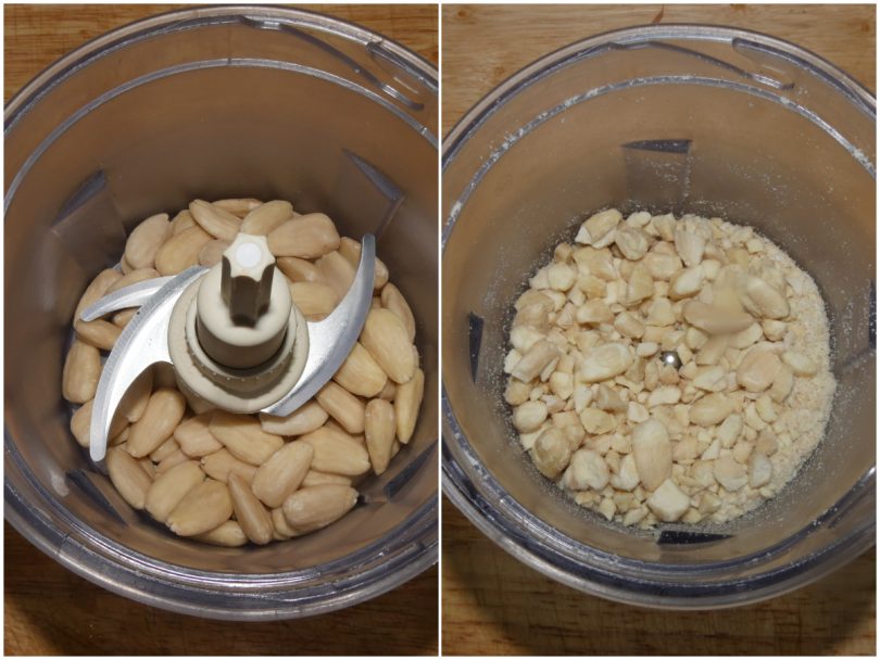 Mettete le mandorle in un mixer e frullatele grossolanamente (in alternativa potete tritarle al coltello).