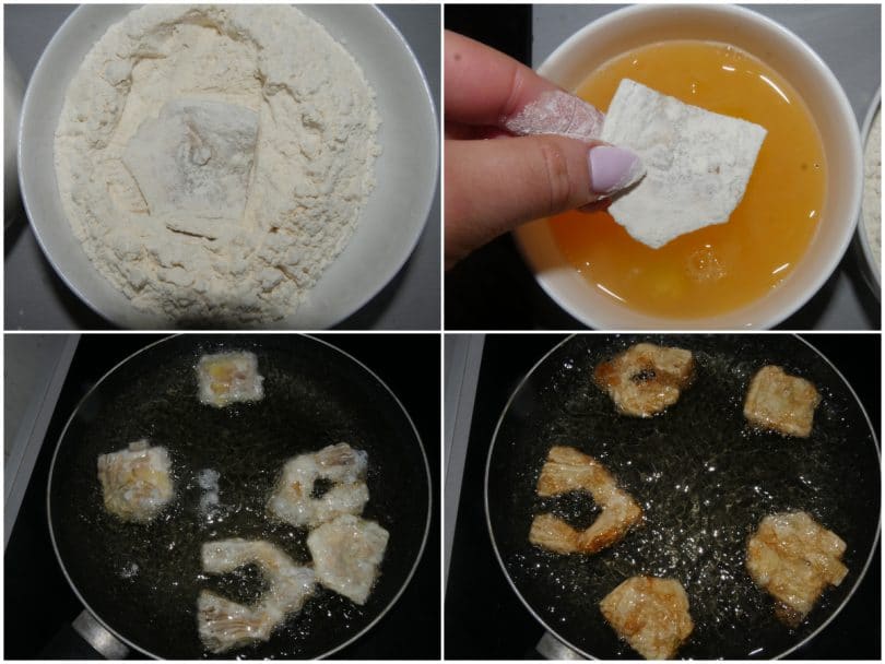 Passate quindi i carciofi prima nella farina e poi nel battuto d'uovo.Scaldare l’olio di semi in una padellina antiaderente e friggervi i carciofi. Far dorare da entrambi i lati quindi sollevateli con una schiumaiola e metteteli da parte