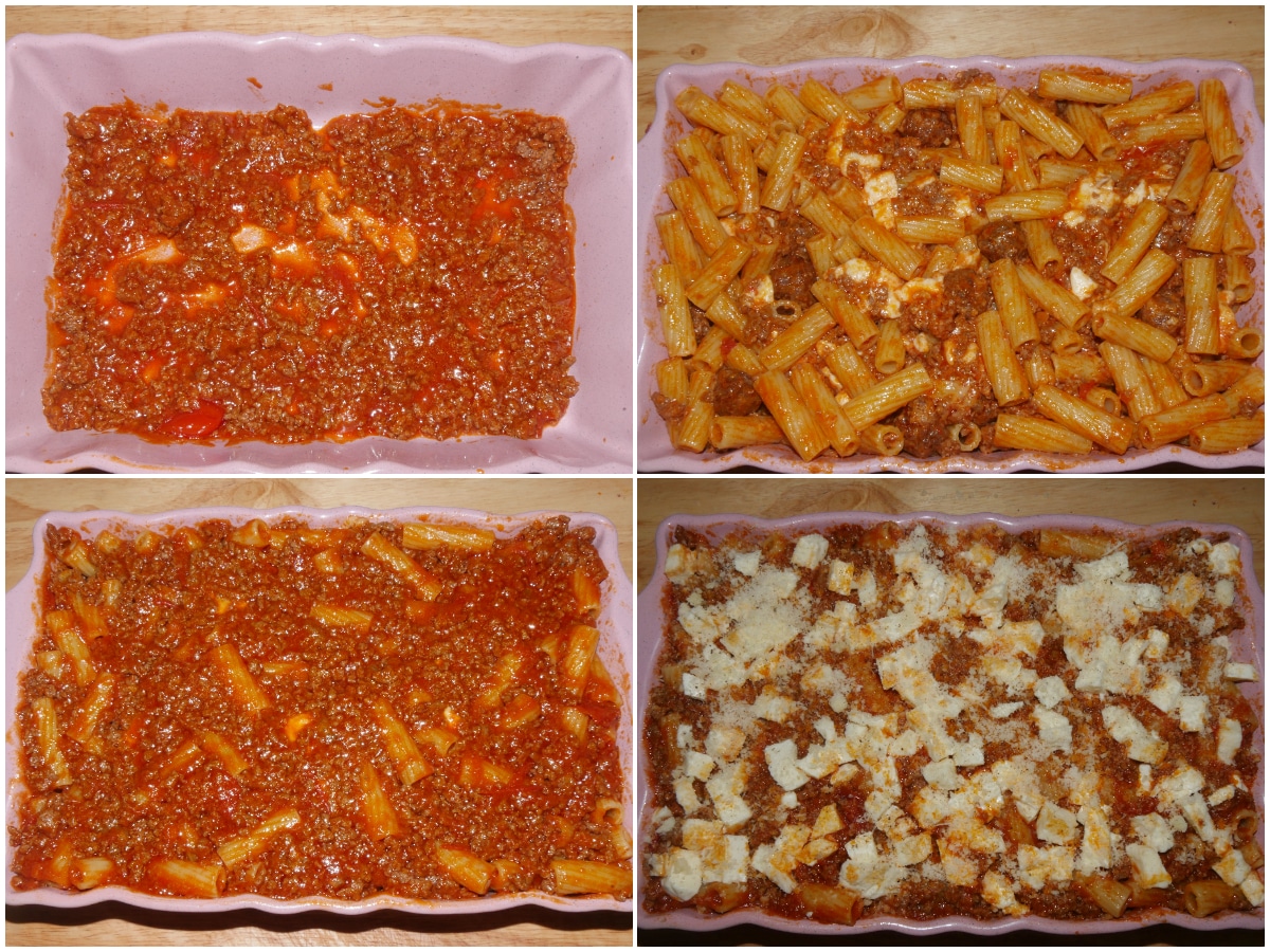 Mia mamma, prima ancora mia nonna, poi io la preparo con il ragù poi a parte polpettine fritte. Ricotta è mozzarella o provola di Agerola. …….maccheroni salsa e ricotta. ….poi 1 strato mozzarella e polpettine. …ancora pasta poi salsa sopra formaggio parmigiano ! che si farà lo strato bruciacchiato buonissimo 🙂
