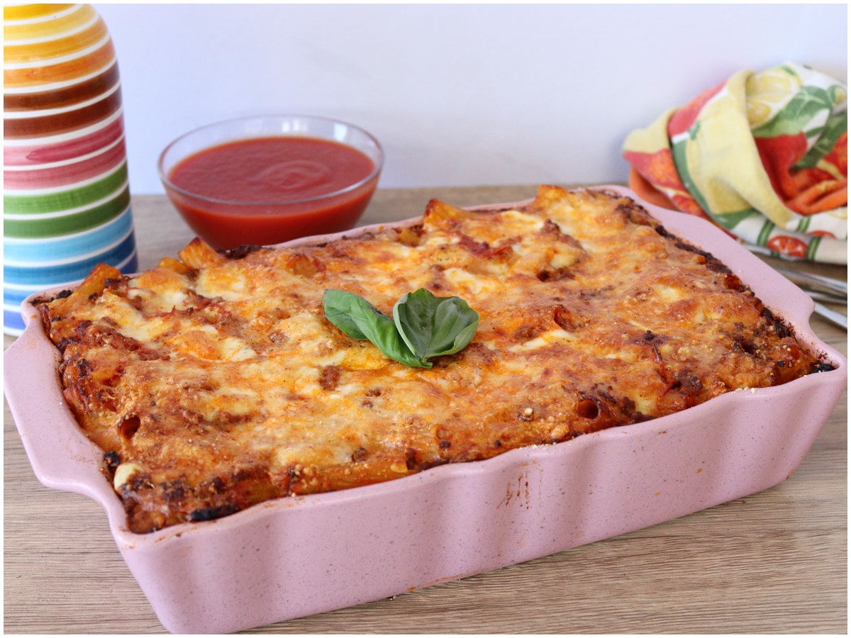 Questa è la versione di pasta al forno che preferisco: con tante polpettine di carne nell'impasto e abbondante mozzarella, slurp!
