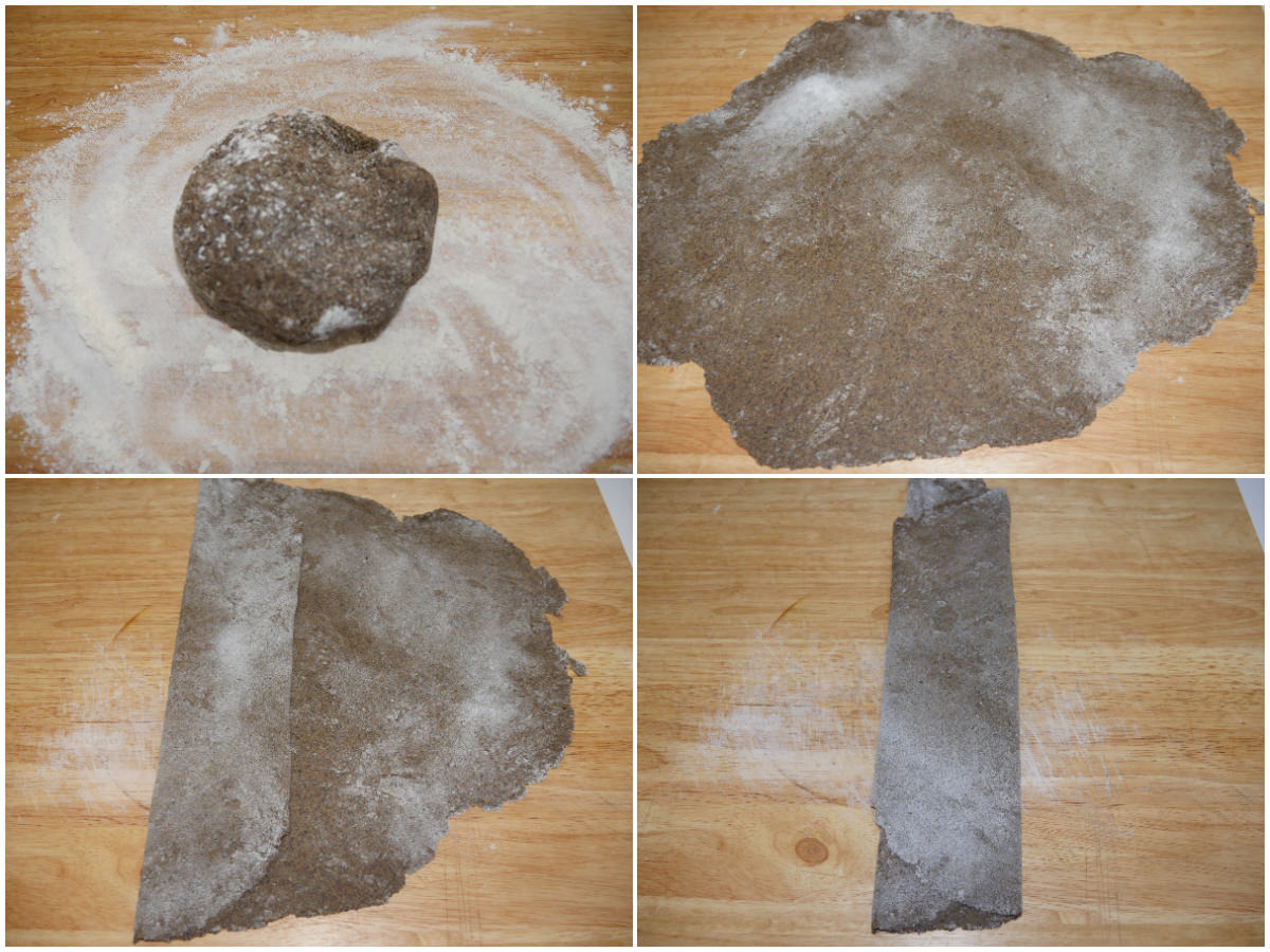 Passato il tempo del riposo, iniziate ad appiattire il panetto su una spianatoia infarinata con un mattarello.