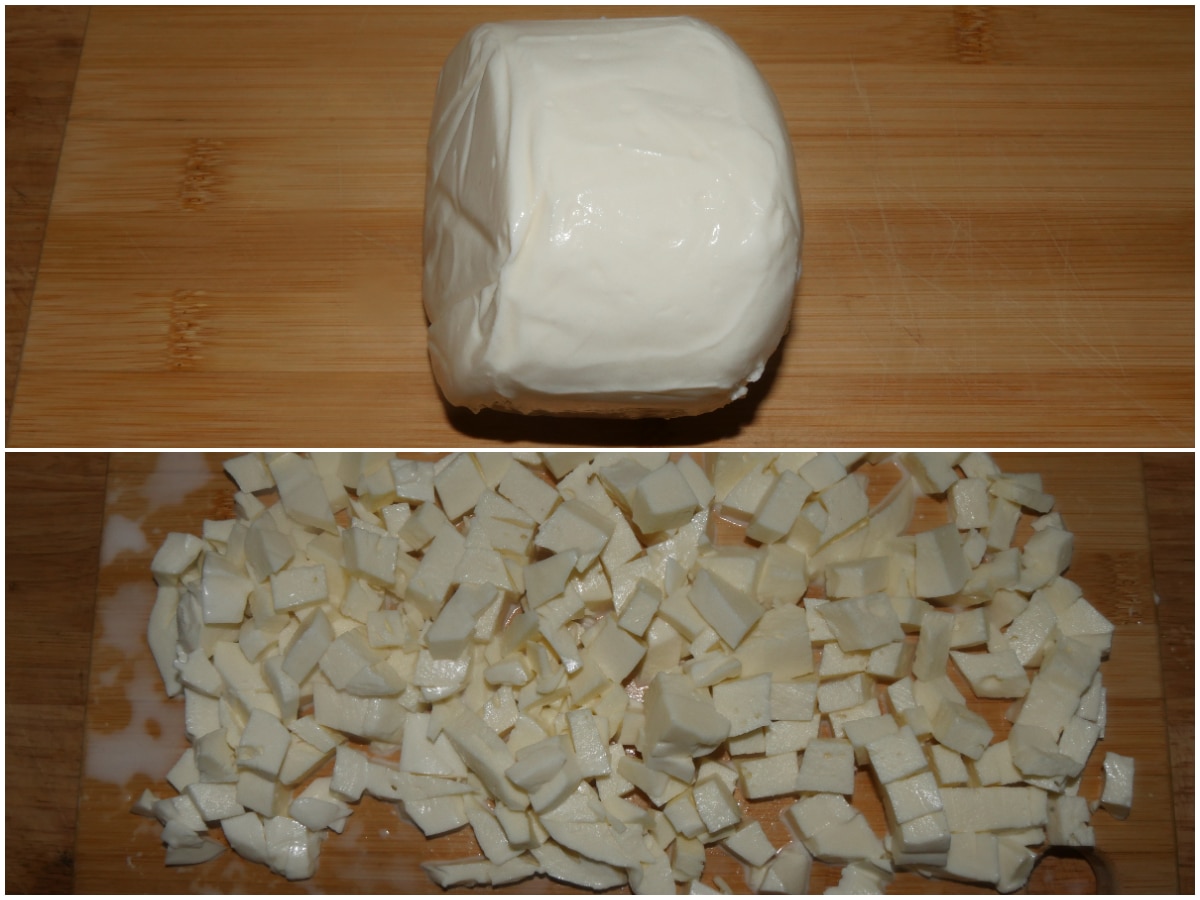 Una volta dorate, sollevare le melanzane con una schiumarola e metterle su della carta assorbente per far perdere l’unto in eccesso. Tagliate il fior di latte a dadini.