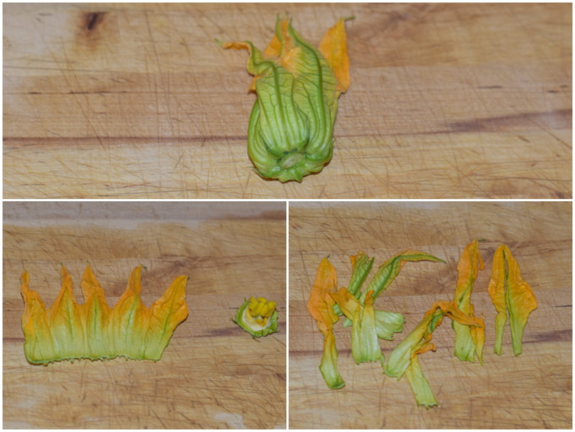 Mondate i fiori eliminando stelo e pistilli, e tagliateli a striscioline.