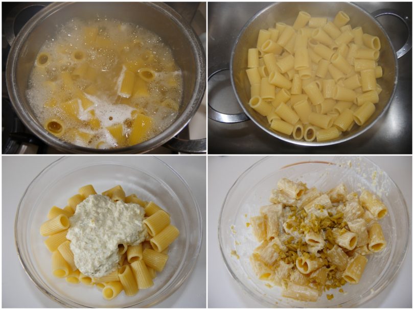Quando l'acqua bolle, calate la pasta e scolatela al dente, conservando un po' di acqua di cottura.