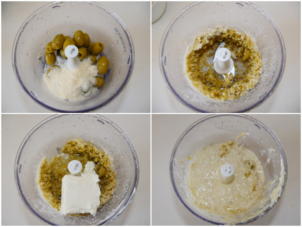 Nel frattempo, mettete in un mixer olive, parmigiano e 2 cucchiai di olio e frullate, quindi aggiungete lo stracchino e frullate ancora.