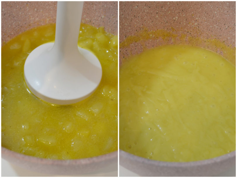 Frullate le patate col brodo rimasto: dovrete ottenere un composto liscio, omogeneo e cremoso.