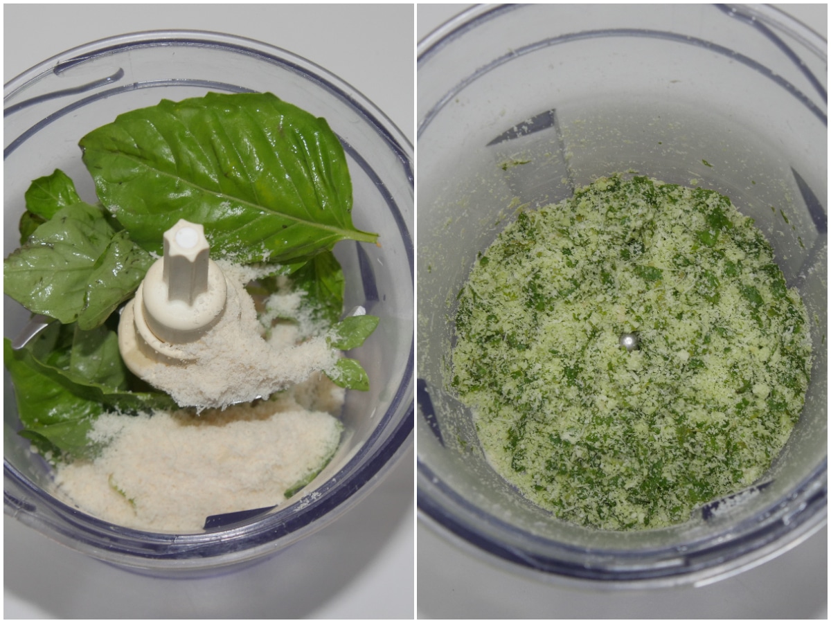 Frullate il basilico con il parmigiano in un mixer e tenete il composto da parte.