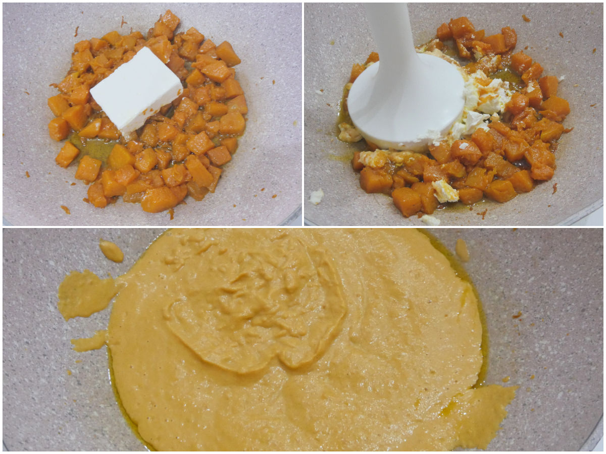 Eliminate aglio e rosmarino, aggiungete il Philadelphia e frullate con un minipimer.
