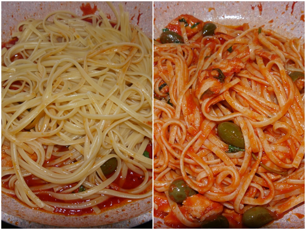 Nel frattempo che il sugo cuoce, cuocete anche la pasta, scolandola ben al dente, quindi unitela al condimento e mescolate.