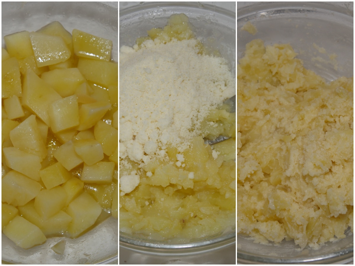 Fate bollire per 10-15 minuti, quindi sollevate 1/3 delle patate con una schiumarola, schiacciatele con una forchetta e mescolatele con il pecorino.