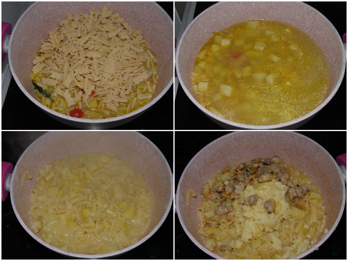 A fine cottura aggiungete la crema di patate e pecorino e le vongole.