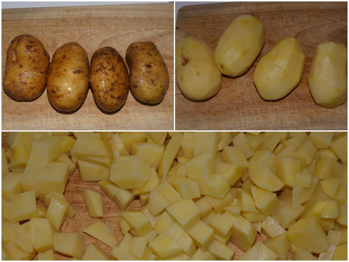 Pelate le patate, lavatele bene e tagliatele a dadini.