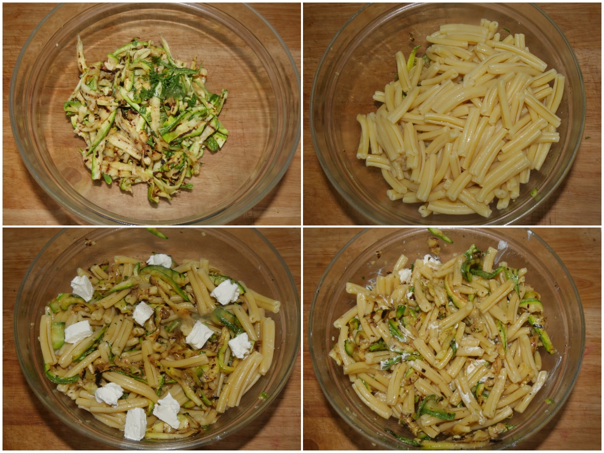 Una volta raffreddata la pasta, versarla nel condimento di zucchine e menta.