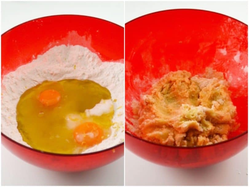 Iniziare ad impastare al centro facendo assorbire man mano tutta la farina.
