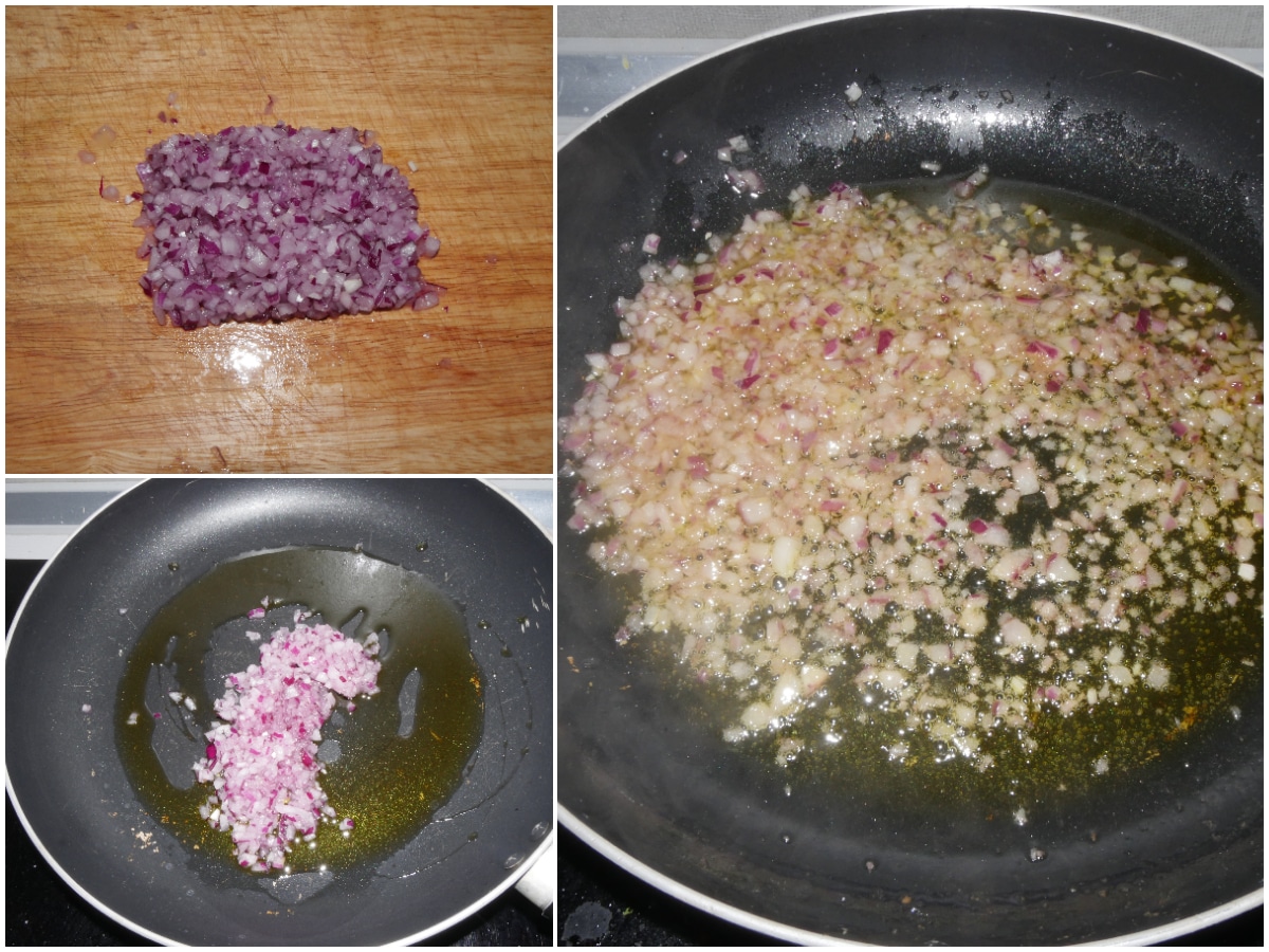 Lasciate imbiondire la cipolla in un'ampia padella con olio abbondante.