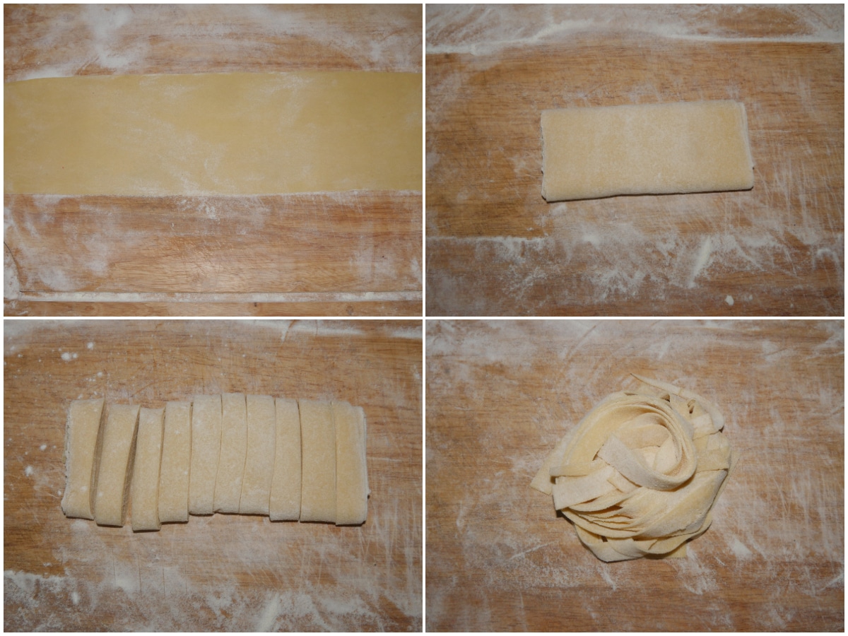 Arrotolate la sfoglia bianca su se stessa, quindi con un coltello a lama liscia tagliatela in fettine larghe circa 6-8 mm.