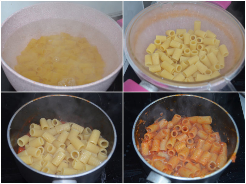 Nel frattempo cuocete la pasta e scolatela al dente, quindi unitela al sugo.