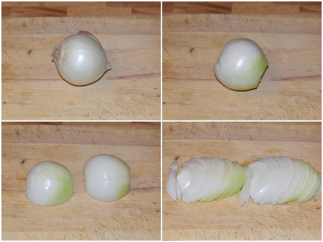 Innanzitutto mondate e cipolle e tagliatele a fettine sottili.