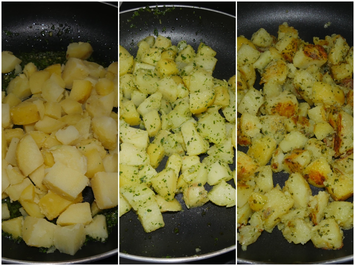 Infine unite i cubetti di patate, condite con il sale e fate rosolare per bene.
